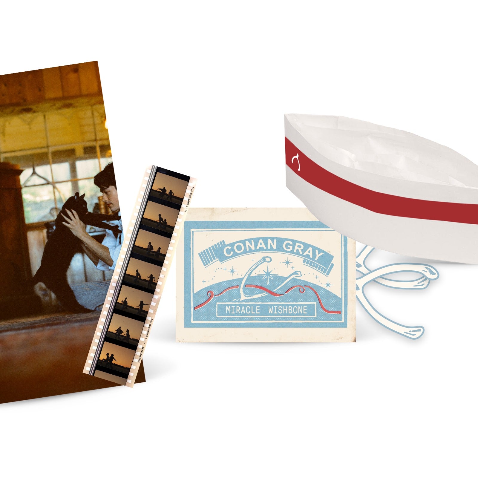 Wishbone, the fourth album by Conan Gray. The Shooting Star Edition LP includes a silver marble vinyl and 16x20” poster featuring an exclusive photo of Conan and Wishbone the Cat.