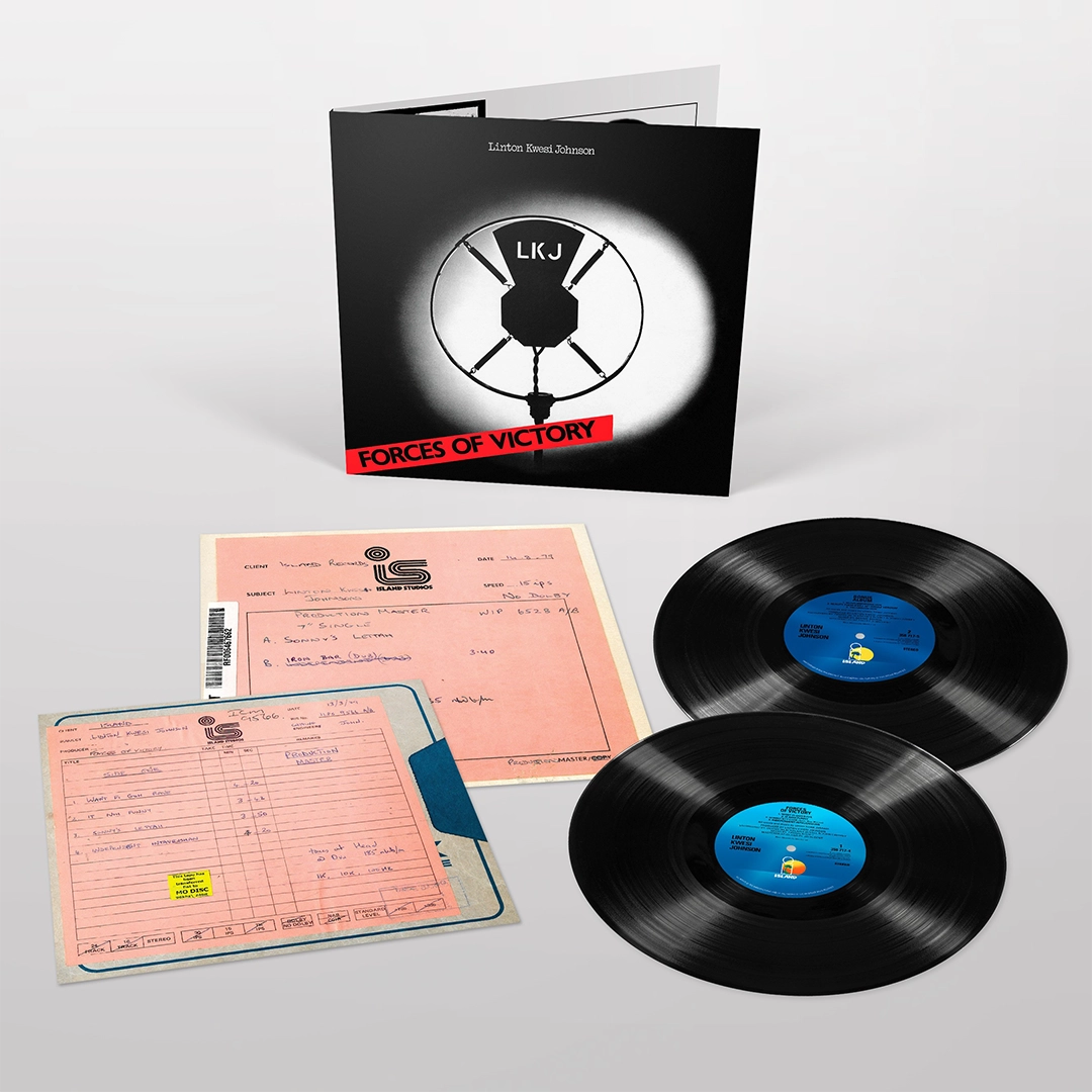 In 2003 David Bowie included Forces of Victory in a list of his 25 favourite albums – Confessions of a Vinyl Junkie… “… some of the most moving poetry to be found in popular music. The quite achingly sad “Sonny’s Lettah (Anti-Sus Poem)” is alone worth the price of admission … this must be one of the most important reggae records of all time. I gave my original copy just recently to Mos Def, in whom I see connections to Johnson, thinking I had already got it on CD. Dammit, I haven’t. So now I’m searching high and low for a copy” Having exploded onto the UK scene in 1978 with the dark, angry masterpiece, Dread Beat & Blood, Brixton ‘dub-poet’ Linton Kwesi Johnson returned in April 1979, with Forces Of Victory – the record that cemented his growing reputation as a major talent. Produced by LKJ and Dennis ‘Blackbeard’ Bovell and featuring his Dub Band providing the infectious grooves, the record contains some of Johnson’s most memorable songs/poems, such as the heartbreaking prison story of injustice, Sonny’s Lettah, the challenging, anti-racist Fite Dem Back, and the jazz-tinged single Want Fi Goh Rave. LKJ was featured in the recent Steve McQueen film ‘Uprising’, about the 1981 New Cross fire that led to civil unrest, and ‘Small Axe’, McQueen’s series of stunning films about the experiences of West Indian immigrants in London. The album is dramatic and intense to the point of claustrophobia – featuring both wry observation and deep political conviction, delivered in LKJ’s unmistakable Jamaican patois. Not simply one of the most important reggae records of its time, it’s one of the most important reggae records ever recorded. Now expanded featuring a second disc of dub versions and extended mixes as well as enhanced artwork, gatefold sleeve and printed inner bags. Remastered at Abbey Road, and released on heavyweight vinyl. Out of print for many years. “A homegrown reggae classic”