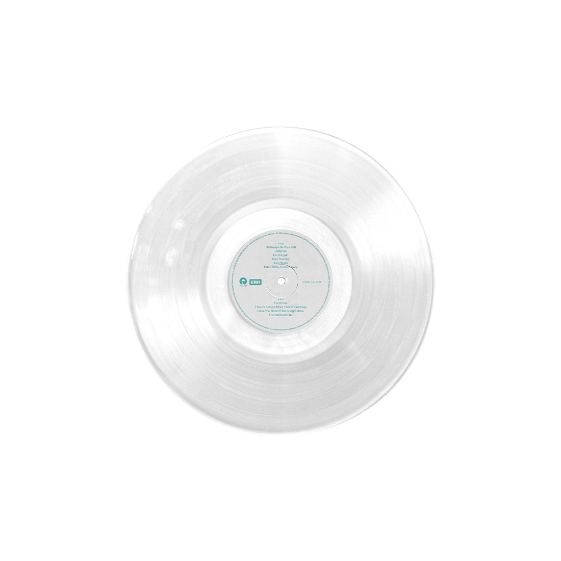 Standard artwork, crystal clear vinyl, matt single sleeve, matt inner sleeve, sticker.